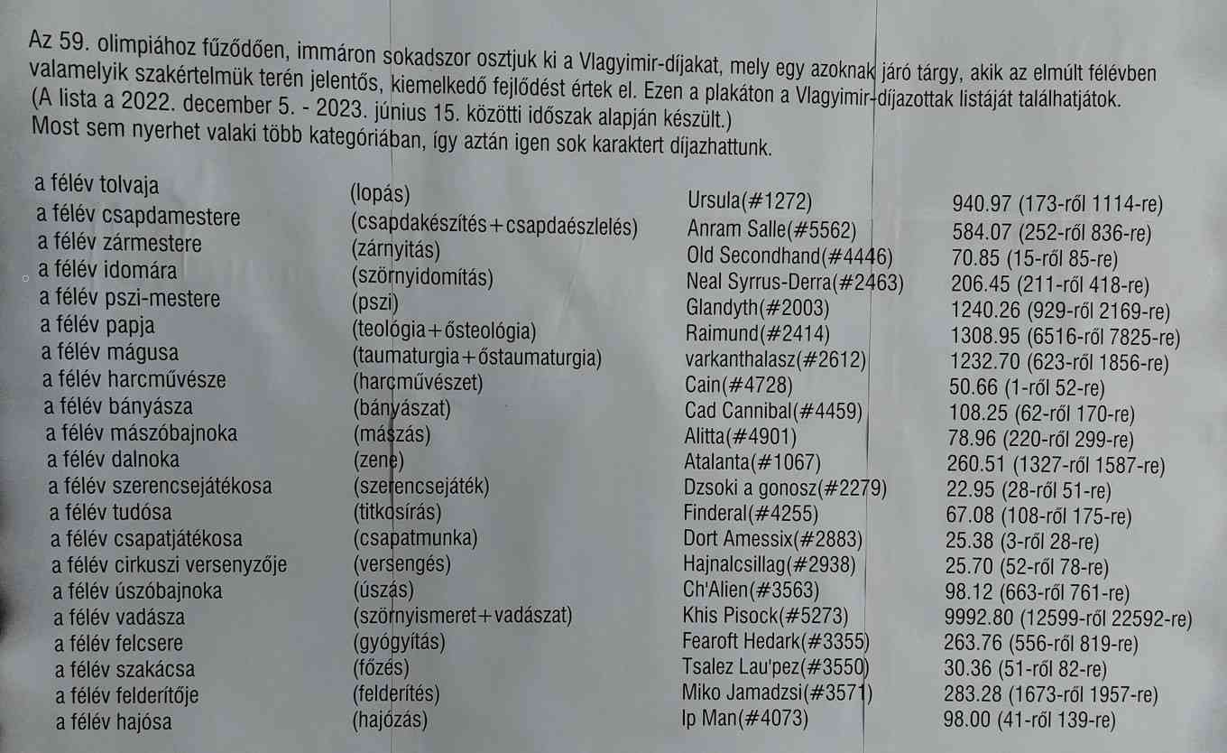 | Új/módosult hírelemek | | Yaurri bányászverseny 3. | | Yaurri mászóverseny 3. | | Yaurri titkosírás verseny 2. | | Yaurri testépítő verseny 2. | | Titanitdukát aukció – 2024. nyár - nyertesek | | Olimpiák története | | A Sötétség Kora | | Termikrajzás 2. | | Yaurri felderítőverseny 2 | | Yaurri felderítőverseny | | XLIV. Alanori Mini Olimpia | | Yaurri kézművesverseny 2. | | Yaurri bányászverseny 2. | | Kalandozók Versenye 2. A Yaurri mászóverseny ma (február 14-én) indult! | | YAURRI TESTEDZŐ VERSENY | | Yaurri titkosírás verseny | | Termikrajzás | | Morf Invázió II. | | LVI. Alanori Olimpia | | XXXVI. Alanori Mini Olimpia | | Yaurri kézművesverseny | | Yaurri bányászverseny | | Plusz TP 2 hétig | | Kalandozók Versenye | | Névpályázat | | Meghalt VI. Borax | | Klasszikus TF 2. - zárás | | Résföld | | XXXIII. Alanori Mini Olimpia | | Végzet Verme 3 | | Élelemszerzés változások | | Elmaradt találkozó | | R.I.P. J.Lo | | Negatív Sík | | 53. Beholder Találkozó - 2020.07.18. szombat | | Titanitdukát aukció - 2020. nyár | | TIT3 titkosírás megfejtő | | R.I.P. | | Klasszikus TF | | Spunk - Pihi | | TRINIGAN RÚNÁJA (453. VARÁZSLÓ VARÁZSLAT) | | Szörny-, varázslat és tárgytervező pályázat | | Végzet Verme 2. | | Az Élet Síkja | | Fairlight bank kamatváltozás | | Szünet az Online táplálásban | | Morf invázió | | Túlélők Földje - Kapcsolat | | Automata táplálás ma délután 4-től élesben (2019. február 18.) | | Online táplálás csevegés (ex-Szerver karbantartás) | | A Tűz síkja | | L. Alanori Olimpia | | Nem hittétek, hogy komoly, mi? | | Hát ez (a) Bunkóság! | | Lemaradt KT-k fejlesztésének a segítése | | Házavató + afterparti Donnánál | | TF fórum - beszéljük meg! | | Élőholt invázió event 2018 | | 25 éves a TF - cikk a nerdblogon | | Új szigetek Erdauinon! | | Kvíz reloaded | | Vashegyek Nemzete KT. #9122 | | Jelentkezés az Olimpiára | | Befizetési akció 2017.06.08. - 2017.06.22. | | A Végzet Verme | | Beholder 25! | | Aukciós változás | | Túlélők 9172KT | | Eseménynaptár 2017 | | Túlélők Földje: Tűzvihar | | Ünnepi munkarend a Beholdernél | | Föld Létsíkja | | III. Quwarg rajzás állapotok | | Álláshirdetés Alanori Könyvtár | | 12! | | Víz Létsíkja | | TF Format a Beholder honlapon | | Letöltések a 4 napos ünnep idején | | Olimpiai Láng | | Kincsvadászat a Kiégett Földeken!!! | | Kvííííz! | | Szabad Kompánia - Toborzás | | Nyugati fejlesztés | | Arany Nyúl Díj '15 | | Tárgy- és varázslattervezői pályázat | | III. Quwarg Invázió előzetes | | Olimpiai Aukció 2015.11.28 | | Túlélők Földje tárgy- és varázslattervezői pályázat | | Társasjáték tesztelés (Startupper Game) | | Kufár hiányában... | | XLIII. BEHOLDER TALÁLKOZÓ PROGRAMJA | | Masszainvázió!!! | | Péntek 13. - Folytatás a Naplók menüben | | Keresem, kutatom | | Idétlen időkig TF... 20 éve | | Bea Melindre és William Madden nagy napja :) | | Közös Tudatok listája | | Új event kibeszélő | | Az átalakulás megkezdődött | | Olimpiai Aukció 2014.11.29 (v11.2) | | Erdauini hírek | | Hétvégi letöltés dömping :) | | Technika ördöge | | Letöltés Október 18-án | | Elementál rajzás | | TS3 szerver | | Két magányos lélek! | | Olimpiai Aukció 2014.06.21 (v10.2) | | Varkaudar-Thargodan Invázió | | 10 éves a GN! | | Bunkó Akadémia | | Ezüstszelence | | Ünnepi munkarend | | Kalandozók Figyelem | | Olimpiai Aukció 2013.11.30 (v9.2) | | Téli Aukció hírek | | Toronyháború 2. | | Házasodott a gizda | | Reloaded | | Help (nem tf) | | Hogyan lesz a Vajákosnak piszkafája? | | Lemaradás vásárlás | | Olimpiai Aukció 2013.06.22. (v8.0) | | Péntek esti bemelegítés | | AK-s labirintusok és krónika (#1725) | | Tárgytervezői pályázat | | Egy ma született húsvéti bárány :-) | | Szerezz ajándékot Túlélők Földje vagy Végzetúr karaktered számára. | | Térkép a netes fordulókban | | Túlélők Földje Bónuszok | | Varázslatok fejlesztése | | II. Quwarg rajzás | | NJK tervezői pályázat - Eredményhirdetés | | Jelenlét bónusz | | EXTRA | | VÉRTVORNYAAAAAA!!!!!!! | | Melegítés a talira | | Olimpiai Aukció 2012.11.24. (v7.0) | | MAFFIA KT Reborn | | NJK Tervezői Pályázat | | II. Quwarg rajzás - Ryuku szigetek | | Probléma | | FOCI EB (vaúúúúúú) JÁTÉK | | Nyilt level Krapixlon Authir olimpiai foszervezonek | | Olimpiai Aukció 2012.06.23. (v6.0) | | ÁRNYMENŐK (#9153 KT) tagokat keres! | | A XXXVII. Beholder találkozó programja | | Rius featuring Koc a Milliomosban | | Közös TF-es Yahoo-s listák | | Elhunyt Wachek Norbi (White Nor Wacak) | | Pályázatok a Túlélők Földje játékosainak a XXXVII. Beholder Találkozóra! | | Quwrag rajzások hősei 2. | | Szakértelem revamp | | Bunkó Akadémia | | A quwarg rajzás hősei | | I. Káosz Bál | | 1. Tesztolimpia | | Tudásbázis moderátorokat keresek | | Quwarg Rajzás 2. | | A Korona Bajnokai (#9125) tagfelvételt hirdet | | új TK-k | | Quwarg rajzás 2 | | Beholder Kft. - Ünnepi munkarend | | Elkezdődött a II. quwarg rajzás? | | Tesztolimpia | | Aukció | | TF fórum - beszéljük meg! | | Olimpiai Aukció 2011.11.26. (v5.0) | | Fogadás! | | Az Ország Boltja verseny - +5% TP | | Mínosz-kúpok a Kiégett Földeken | | Kilépés a KT-ból | | Adatbázis-bővítés | | XXXVI. Beholder találkozó | | Ébredés | | Tag felvétel | | Változások 2011.09.29. | | Rendkívüli tf-fórum | | Beállítós UL | | Lemaradás vásárlás - véglegesítve | | Lemaradás vásárlás | | Tali Aukció 2011.06.18. (v 4.0) | | TVP termelő kiskapu | | Borax király beteg | | A XXXV. Beholder találkozó programja | | Vertestverek LAST MINUTE | | Ünnepi munkarend | | Új terület: Kiégett Föld | | TF talis aukció v3.0 | | A XXXIV. Beholder találkozó programja | | Erőpróba | | Várkuti találkozó hely