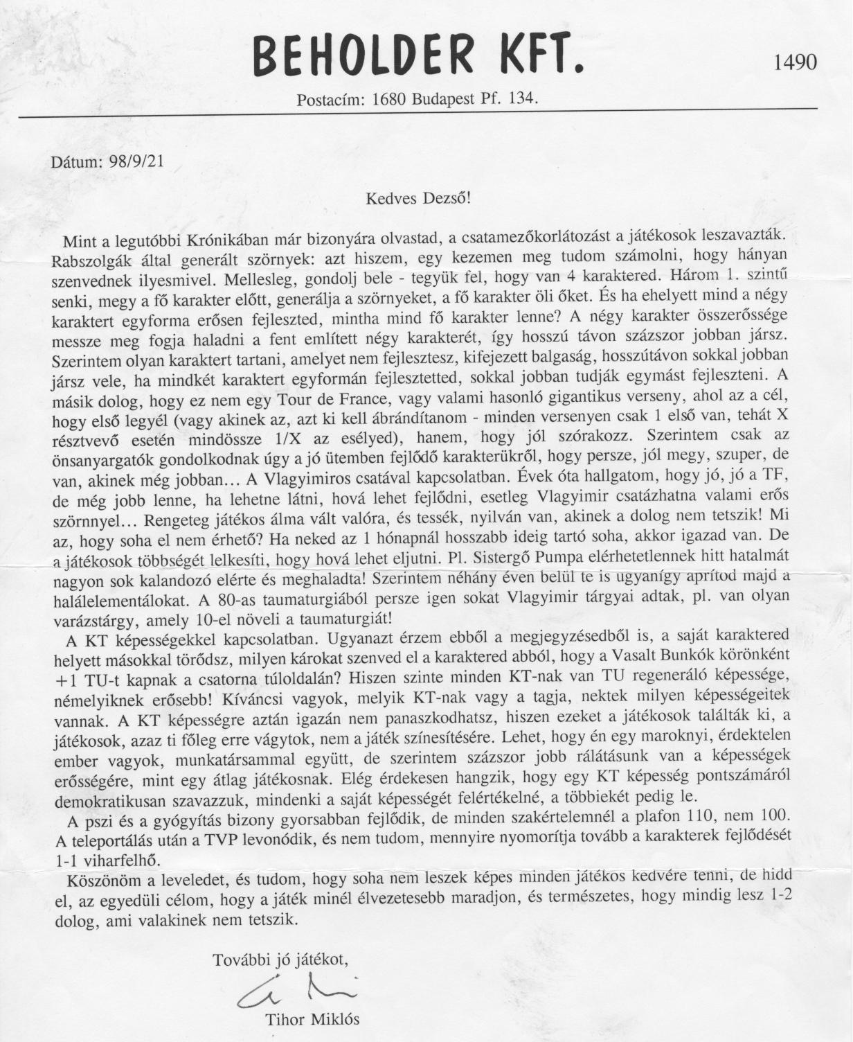 | Új/módosult hírelemek | | Yaurri bányászverseny 3. | | Yaurri mászóverseny 3. | | Yaurri titkosírás verseny 2. | | Yaurri testépítő verseny 2. | | Titanitdukát aukció – 2024. nyár - nyertesek | | Olimpiák története | | A Sötétség Kora | | Termikrajzás 2. | | Yaurri felderítőverseny 2 | | Yaurri felderítőverseny | | XLIV. Alanori Mini Olimpia | | Yaurri kézművesverseny 2. | | Yaurri bányászverseny 2. | | Kalandozók Versenye 2. A Yaurri mászóverseny ma (február 14-én) indult! | | YAURRI TESTEDZŐ VERSENY | | Yaurri titkosírás verseny | | Termikrajzás | | Morf Invázió II. | | LVI. Alanori Olimpia | | XXXVI. Alanori Mini Olimpia | | Yaurri kézművesverseny | | Yaurri bányászverseny | | Plusz TP 2 hétig | | Kalandozók Versenye | | Névpályázat | | Meghalt VI. Borax | | Klasszikus TF 2. - zárás | | Résföld | | XXXIII. Alanori Mini Olimpia | | Végzet Verme 3 | | Élelemszerzés változások | | Elmaradt találkozó | | R.I.P. J.Lo | | Negatív Sík | | 53. Beholder Találkozó - 2020.07.18. szombat | | Titanitdukát aukció - 2020. nyár | | TIT3 titkosírás megfejtő | | R.I.P. | | Klasszikus TF | | Spunk - Pihi | | TRINIGAN RÚNÁJA (453. VARÁZSLÓ VARÁZSLAT) | | Szörny-, varázslat és tárgytervező pályázat | | Végzet Verme 2. | | Az Élet Síkja | | Fairlight bank kamatváltozás | | Szünet az Online táplálásban | | Morf invázió | | Túlélők Földje - Kapcsolat | | Automata táplálás ma délután 4-től élesben (2019. február 18.) | | Online táplálás csevegés (ex-Szerver karbantartás) | | A Tűz síkja | | L. Alanori Olimpia | | Nem hittétek, hogy komoly, mi? | | Hát ez (a) Bunkóság! | | Lemaradt KT-k fejlesztésének a segítése | | Házavató + afterparti Donnánál | | TF fórum - beszéljük meg! | | Élőholt invázió event 2018 | | 25 éves a TF - cikk a nerdblogon | | Új szigetek Erdauinon! | | Kvíz reloaded | | Vashegyek Nemzete KT. #9122 | | Jelentkezés az Olimpiára | | Befizetési akció 2017.06.08. - 2017.06.22. | | A Végzet Verme | | Beholder 25! | | Aukciós változás | | Túlélők 9172KT | | Eseménynaptár 2017 | | Túlélők Földje: Tűzvihar | | Ünnepi munkarend a Beholdernél | | Föld Létsíkja | | III. Quwarg rajzás állapotok | | Álláshirdetés Alanori Könyvtár | | 12! | | Víz Létsíkja | | TF Format a Beholder honlapon | | Letöltések a 4 napos ünnep idején | | Olimpiai Láng | | Kincsvadászat a Kiégett Földeken!!! | | Kvííííz! | | Szabad Kompánia - Toborzás | | Nyugati fejlesztés | | Arany Nyúl Díj '15 | | Tárgy- és varázslattervezői pályázat | | III. Quwarg Invázió előzetes | | Olimpiai Aukció 2015.11.28 | | Túlélők Földje tárgy- és varázslattervezői pályázat | | Társasjáték tesztelés (Startupper Game) | | Kufár hiányában... | | XLIII. BEHOLDER TALÁLKOZÓ PROGRAMJA | | Masszainvázió!!! | | Péntek 13. - Folytatás a Naplók menüben | | Keresem, kutatom | | Idétlen időkig TF... 20 éve | | Bea Melindre és William Madden nagy napja :) | | Közös Tudatok listája | | Új event kibeszélő | | Az átalakulás megkezdődött | | Olimpiai Aukció 2014.11.29 (v11.2) | | Erdauini hírek | | Hétvégi letöltés dömping :) | | Technika ördöge | | Letöltés Október 18-án | | Elementál rajzás | | TS3 szerver | | Két magányos lélek! | | Olimpiai Aukció 2014.06.21 (v10.2) | | Varkaudar-Thargodan Invázió | | 10 éves a GN! | | Bunkó Akadémia | | Ezüstszelence | | Ünnepi munkarend | | Kalandozók Figyelem | | Olimpiai Aukció 2013.11.30 (v9.2) | | Téli Aukció hírek | | Toronyháború 2. | | Házasodott a gizda | | Reloaded | | Help (nem tf) | | Hogyan lesz a Vajákosnak piszkafája? | | Lemaradás vásárlás | | Olimpiai Aukció 2013.06.22. (v8.0) | | Péntek esti bemelegítés | | AK-s labirintusok és krónika (#1725) | | Tárgytervezői pályázat | | Egy ma született húsvéti bárány :-) | | Szerezz ajándékot Túlélők Földje vagy Végzetúr karaktered számára. | | Térkép a netes fordulókban | | Túlélők Földje Bónuszok | | Varázslatok fejlesztése | | II. Quwarg rajzás | | NJK tervezői pályázat - Eredményhirdetés | | Jelenlét bónusz | | EXTRA | | VÉRTVORNYAAAAAA!!!!!!! | | Melegítés a talira | | Olimpiai Aukció 2012.11.24. (v7.0) | | MAFFIA KT Reborn | | NJK Tervezői Pályázat | | II. Quwarg rajzás - Ryuku szigetek | | Probléma | | FOCI EB (vaúúúúúú) JÁTÉK | | Nyilt level Krapixlon Authir olimpiai foszervezonek | | Olimpiai Aukció 2012.06.23. (v6.0) | | ÁRNYMENŐK (#9153 KT) tagokat keres! | | A XXXVII. Beholder találkozó programja | | Rius featuring Koc a Milliomosban | | Közös TF-es Yahoo-s listák | | Elhunyt Wachek Norbi (White Nor Wacak) | | Pályázatok a Túlélők Földje játékosainak a XXXVII. Beholder Találkozóra! | | Quwrag rajzások hősei 2. | | Szakértelem revamp | | Bunkó Akadémia | | A quwarg rajzás hősei | | I. Káosz Bál | | 1. Tesztolimpia | | Tudásbázis moderátorokat keresek | | Quwarg Rajzás 2. | | A Korona Bajnokai (#9125) tagfelvételt hirdet | | új TK-k | | Quwarg rajzás 2 | | Beholder Kft. - Ünnepi munkarend | | Elkezdődött a II. quwarg rajzás? | | Tesztolimpia | | Aukció | | TF fórum - beszéljük meg! | | Olimpiai Aukció 2011.11.26. (v5.0) | | Fogadás! | | Az Ország Boltja verseny - +5% TP | | Mínosz-kúpok a Kiégett Földeken | | Kilépés a KT-ból | | Adatbázis-bővítés | | XXXVI. Beholder találkozó | | Ébredés | | Tag felvétel | | Változások 2011.09.29. | | Rendkívüli tf-fórum | | Beállítós UL | | Lemaradás vásárlás - véglegesítve | | Lemaradás vásárlás | | Tali Aukció 2011.06.18. (v 4.0) | | TVP termelő kiskapu | | Borax király beteg | | A XXXV. Beholder találkozó programja | | Vertestverek LAST MINUTE | | Ünnepi munkarend | | Új terület: Kiégett Föld | | TF talis aukció v3.0 | | A XXXIV. Beholder találkozó programja | | Erőpróba | | Várkuti találkozó hely