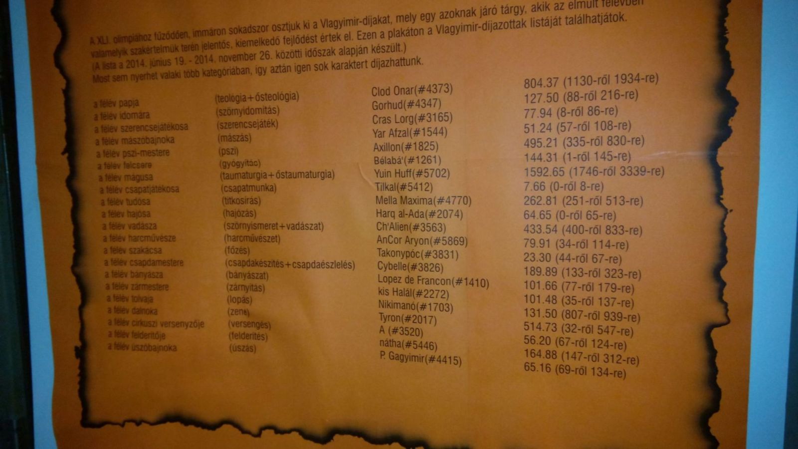 [11:52] játékvezető: valójában csak beírtuk annak, aki jelezte [11:51] játékvezető: rossz szóhanálat volt, hogy "javítottuk" [11:41] Danair: nem, nem jelentek meg [10:41] Miko: javitottak, megjelentek a jutalmak [10:20] Pjtor: itt a bizonyitek ra, hogy rossz a szamlaszamod [09:59] Danair: Jaja nincsenek befizetési jutalmak [08:24] Neal: Grat a helyezetteknek! [13:51] Chan: Alaria: grat! :) [11:36] Gwill: valami fura random probléma lehet, mert több embernek sem jelentek meg az ikonok [11:33] cobal: A problémám a kis ikonok hiánya. [10:51] Titusz mester: Azokat szet lehet osztani. Ld . Karakterek mellett a kis ikonok [09:35] cobal: Sziasztok! Befizetési jutalmak késve érkeznek? Csak zsetonokat kaptam. [04:37] Alaria: Minden idok legsikeresebb olimpiam lett! :) [23:05] cabal: Köszönjük a szervezést és a levezetést a résztvevőknek! :) [20:52] Garaz: Kati,köszönjük a szervezést, megint jó volt a tali!