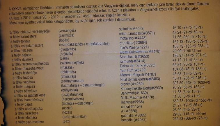 [11:52] játékvezető: valójában csak beírtuk annak, aki jelezte [11:51] játékvezető: rossz szóhanálat volt, hogy "javítottuk" [11:41] Danair: nem, nem jelentek meg [10:41] Miko: javitottak, megjelentek a jutalmak [10:20] Pjtor: itt a bizonyitek ra, hogy rossz a szamlaszamod [09:59] Danair: Jaja nincsenek befizetési jutalmak [08:24] Neal: Grat a helyezetteknek! [13:51] Chan: Alaria: grat! :) [11:36] Gwill: valami fura random probléma lehet, mert több embernek sem jelentek meg az ikonok [11:33] cobal: A problémám a kis ikonok hiánya. [10:51] Titusz mester: Azokat szet lehet osztani. Ld . Karakterek mellett a kis ikonok [09:35] cobal: Sziasztok! Befizetési jutalmak késve érkeznek? Csak zsetonokat kaptam. [04:37] Alaria: Minden idok legsikeresebb olimpiam lett! :) [23:05] cabal: Köszönjük a szervezést és a levezetést a résztvevőknek! :) [20:52] Garaz: Kati,köszönjük a szervezést, megint jó volt a tali!