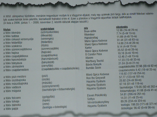 | | | | Top 100 >> | Legtöbb bizonyítás a tudásbázisban: | | Felhasználó | # | | Koc | 155 | | Marcsa | 69 | | Givangel | 66 | | FlyXan | 57 | | Spunk | 56 | | Ababo | 54 | | Annak | 44 | | Zka | 43 | | Fear'A Wee | 29 | | cinty | 28 | Tudásbázis toplista: | | Felhasználó | Tudás | | Marcsa | 98.9130% | | Annak | 98.0299% | | FlyXan | 96.2808% | | Yoro | 96.0806% | | Zka | 95.1073% | | skaven | 94.3440% | | Amanda | 93.4325% | | Balu | 92.5755% | | Koc | 92.5562% | | Spirit | 91.7366% |