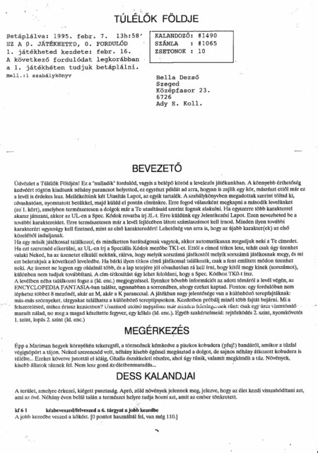 | Új/módosult hírelemek | | Yaurri bányászverseny 3. | | Yaurri mászóverseny 3. | | Yaurri titkosírás verseny 2. | | Yaurri testépítő verseny 2. | | Titanitdukát aukció – 2024. nyár - nyertesek | | Olimpiák története | | A Sötétség Kora | | Termikrajzás 2. | | Yaurri felderítőverseny 2 | | Yaurri felderítőverseny | | XLIV. Alanori Mini Olimpia | | Yaurri kézművesverseny 2. | | Yaurri bányászverseny 2. | | Kalandozók Versenye 2. A Yaurri mászóverseny ma (február 14-én) indult! | | YAURRI TESTEDZŐ VERSENY | | Yaurri titkosírás verseny | | Termikrajzás | | Morf Invázió II. | | LVI. Alanori Olimpia | | XXXVI. Alanori Mini Olimpia | | Yaurri kézművesverseny | | Yaurri bányászverseny | | Plusz TP 2 hétig | | Kalandozók Versenye | | Névpályázat | | Meghalt VI. Borax | | Klasszikus TF 2. - zárás | | Résföld | | XXXIII. Alanori Mini Olimpia | | Végzet Verme 3 | | Élelemszerzés változások | | Elmaradt találkozó | | R.I.P. J.Lo | | Negatív Sík | | 53. Beholder Találkozó - 2020.07.18. szombat | | Titanitdukát aukció - 2020. nyár | | TIT3 titkosírás megfejtő | | R.I.P. | | Klasszikus TF | | Spunk - Pihi | | TRINIGAN RÚNÁJA (453. VARÁZSLÓ VARÁZSLAT) | | Szörny-, varázslat és tárgytervező pályázat | | Végzet Verme 2. | | Az Élet Síkja | | Fairlight bank kamatváltozás | | Szünet az Online táplálásban | | Morf invázió | | Túlélők Földje - Kapcsolat | | Automata táplálás ma délután 4-től élesben (2019. február 18.) | | Online táplálás csevegés (ex-Szerver karbantartás) | | A Tűz síkja | | L. Alanori Olimpia | | Nem hittétek, hogy komoly, mi? | | Hát ez (a) Bunkóság! | | Lemaradt KT-k fejlesztésének a segítése | | Házavató + afterparti Donnánál | | TF fórum - beszéljük meg! | | Élőholt invázió event 2018 | | 25 éves a TF - cikk a nerdblogon | | Új szigetek Erdauinon! | | Kvíz reloaded | | Vashegyek Nemzete KT. #9122 | | Jelentkezés az Olimpiára | | Befizetési akció 2017.06.08. - 2017.06.22. | | A Végzet Verme | | Beholder 25! | | Aukciós változás | | Túlélők 9172KT | | Eseménynaptár 2017 | | Túlélők Földje: Tűzvihar | | Ünnepi munkarend a Beholdernél | | Föld Létsíkja | | III. Quwarg rajzás állapotok | | Álláshirdetés Alanori Könyvtár | | 12! | | Víz Létsíkja | | TF Format a Beholder honlapon | | Letöltések a 4 napos ünnep idején | | Olimpiai Láng | | Kincsvadászat a Kiégett Földeken!!! | | Kvííííz! | | Szabad Kompánia - Toborzás | | Nyugati fejlesztés | | Arany Nyúl Díj '15 | | Tárgy- és varázslattervezői pályázat | | III. Quwarg Invázió előzetes | | Olimpiai Aukció 2015.11.28 | | Túlélők Földje tárgy- és varázslattervezői pályázat | | Társasjáték tesztelés (Startupper Game) | | Kufár hiányában... | | XLIII. BEHOLDER TALÁLKOZÓ PROGRAMJA | | Masszainvázió!!! | | Péntek 13. - Folytatás a Naplók menüben | | Keresem, kutatom | | Idétlen időkig TF... 20 éve | | Bea Melindre és William Madden nagy napja :) | | Közös Tudatok listája | | Új event kibeszélő | | Az átalakulás megkezdődött | | Olimpiai Aukció 2014.11.29 (v11.2) | | Erdauini hírek | | Hétvégi letöltés dömping :) | | Technika ördöge | | Letöltés Október 18-án | | Elementál rajzás | | TS3 szerver | | Két magányos lélek! | | Olimpiai Aukció 2014.06.21 (v10.2) | | Varkaudar-Thargodan Invázió | | 10 éves a GN! | | Bunkó Akadémia | | Ezüstszelence | | Ünnepi munkarend | | Kalandozók Figyelem | | Olimpiai Aukció 2013.11.30 (v9.2) | | Téli Aukció hírek | | Toronyháború 2. | | Házasodott a gizda | | Reloaded | | Help (nem tf) | | Hogyan lesz a Vajákosnak piszkafája? | | Lemaradás vásárlás | | Olimpiai Aukció 2013.06.22. (v8.0) | | Péntek esti bemelegítés | | AK-s labirintusok és krónika (#1725) | | Tárgytervezői pályázat | | Egy ma született húsvéti bárány :-) | | Szerezz ajándékot Túlélők Földje vagy Végzetúr karaktered számára. | | Térkép a netes fordulókban | | Túlélők Földje Bónuszok | | Varázslatok fejlesztése | | II. Quwarg rajzás | | NJK tervezői pályázat - Eredményhirdetés | | Jelenlét bónusz | | EXTRA | | VÉRTVORNYAAAAAA!!!!!!! | | Melegítés a talira | | Olimpiai Aukció 2012.11.24. (v7.0) | | MAFFIA KT Reborn | | NJK Tervezői Pályázat | | II. Quwarg rajzás - Ryuku szigetek | | Probléma | | FOCI EB (vaúúúúúú) JÁTÉK | | Nyilt level Krapixlon Authir olimpiai foszervezonek | | Olimpiai Aukció 2012.06.23. (v6.0) | | ÁRNYMENŐK (#9153 KT) tagokat keres! | | A XXXVII. Beholder találkozó programja | | Rius featuring Koc a Milliomosban | | Közös TF-es Yahoo-s listák | | Elhunyt Wachek Norbi (White Nor Wacak) | | Pályázatok a Túlélők Földje játékosainak a XXXVII. Beholder Találkozóra! | | Quwrag rajzások hősei 2. | | Szakértelem revamp | | Bunkó Akadémia | | A quwarg rajzás hősei | | I. Káosz Bál | | 1. Tesztolimpia | | Tudásbázis moderátorokat keresek | | Quwarg Rajzás 2. | | A Korona Bajnokai (#9125) tagfelvételt hirdet | | új TK-k | | Quwarg rajzás 2 | | Beholder Kft. - Ünnepi munkarend | | Elkezdődött a II. quwarg rajzás? | | Tesztolimpia | | Aukció | | TF fórum - beszéljük meg! | | Olimpiai Aukció 2011.11.26. (v5.0) | | Fogadás! | | Az Ország Boltja verseny - +5% TP | | Mínosz-kúpok a Kiégett Földeken | | Kilépés a KT-ból | | Adatbázis-bővítés | | XXXVI. Beholder találkozó | | Ébredés | | Tag felvétel | | Változások 2011.09.29. | | Rendkívüli tf-fórum | | Beállítós UL | | Lemaradás vásárlás - véglegesítve | | Lemaradás vásárlás | | Tali Aukció 2011.06.18. (v 4.0) | | TVP termelő kiskapu | | Borax király beteg | | A XXXV. Beholder találkozó programja | | Vertestverek LAST MINUTE | | Ünnepi munkarend | | Új terület: Kiégett Föld | | TF talis aukció v3.0 | | A XXXIV. Beholder találkozó programja | | Erőpróba | | Várkuti találkozó hely