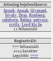 | Új/módosult hírelemek | | Yaurri bányászverseny 3. | | Yaurri mászóverseny 3. | | Yaurri titkosírás verseny 2. | | Yaurri testépítő verseny 2. | | Titanitdukát aukció – 2024. nyár - nyertesek | | Olimpiák története | | A Sötétség Kora | | Termikrajzás 2. | | Yaurri felderítőverseny 2 | | Yaurri felderítőverseny | | XLIV. Alanori Mini Olimpia | | Yaurri kézművesverseny 2. | | Yaurri bányászverseny 2. | | Kalandozók Versenye 2. A Yaurri mászóverseny ma (február 14-én) indult! | | YAURRI TESTEDZŐ VERSENY | | Yaurri titkosírás verseny | | Termikrajzás | | Morf Invázió II. | | LVI. Alanori Olimpia | | XXXVI. Alanori Mini Olimpia | | Yaurri kézművesverseny | | Yaurri bányászverseny | | Plusz TP 2 hétig | | Kalandozók Versenye | | Névpályázat | | Meghalt VI. Borax | | Klasszikus TF 2. - zárás | | Résföld | | XXXIII. Alanori Mini Olimpia | | Végzet Verme 3 | | Élelemszerzés változások | | Elmaradt találkozó | | R.I.P. J.Lo | | Negatív Sík | | 53. Beholder Találkozó - 2020.07.18. szombat | | Titanitdukát aukció - 2020. nyár | | TIT3 titkosírás megfejtő | | R.I.P. | | Klasszikus TF | | Spunk - Pihi | | TRINIGAN RÚNÁJA (453. VARÁZSLÓ VARÁZSLAT) | | Szörny-, varázslat és tárgytervező pályázat | | Végzet Verme 2. | | Az Élet Síkja | | Fairlight bank kamatváltozás | | Szünet az Online táplálásban | | Morf invázió | | Túlélők Földje - Kapcsolat | | Automata táplálás ma délután 4-től élesben (2019. február 18.) | | Online táplálás csevegés (ex-Szerver karbantartás) | | A Tűz síkja | | L. Alanori Olimpia | | Nem hittétek, hogy komoly, mi? | | Hát ez (a) Bunkóság! | | Lemaradt KT-k fejlesztésének a segítése | | Házavató + afterparti Donnánál | | TF fórum - beszéljük meg! | | Élőholt invázió event 2018 | | 25 éves a TF - cikk a nerdblogon | | Új szigetek Erdauinon! | | Kvíz reloaded | | Vashegyek Nemzete KT. #9122 | | Jelentkezés az Olimpiára | | Befizetési akció 2017.06.08. - 2017.06.22. | | A Végzet Verme | | Beholder 25! | | Aukciós változás | | Túlélők 9172KT | | Eseménynaptár 2017 | | Túlélők Földje: Tűzvihar | | Ünnepi munkarend a Beholdernél | | Föld Létsíkja | | III. Quwarg rajzás állapotok | | Álláshirdetés Alanori Könyvtár | | 12! | | Víz Létsíkja | | TF Format a Beholder honlapon | | Letöltések a 4 napos ünnep idején | | Olimpiai Láng | | Kincsvadászat a Kiégett Földeken!!! | | Kvííííz! | | Szabad Kompánia - Toborzás | | Nyugati fejlesztés | | Arany Nyúl Díj '15 | | Tárgy- és varázslattervezői pályázat | | III. Quwarg Invázió előzetes | | Olimpiai Aukció 2015.11.28 | | Túlélők Földje tárgy- és varázslattervezői pályázat | | Társasjáték tesztelés (Startupper Game) | | Kufár hiányában... | | XLIII. BEHOLDER TALÁLKOZÓ PROGRAMJA | | Masszainvázió!!! | | Péntek 13. - Folytatás a Naplók menüben | | Keresem, kutatom | | Idétlen időkig TF... 20 éve | | Bea Melindre és William Madden nagy napja :) | | Közös Tudatok listája | | Új event kibeszélő | | Az átalakulás megkezdődött | | Olimpiai Aukció 2014.11.29 (v11.2) | | Erdauini hírek | | Hétvégi letöltés dömping :) | | Technika ördöge | | Letöltés Október 18-án | | Elementál rajzás | | TS3 szerver | | Két magányos lélek! | | Olimpiai Aukció 2014.06.21 (v10.2) | | Varkaudar-Thargodan Invázió | | 10 éves a GN! | | Bunkó Akadémia | | Ezüstszelence | | Ünnepi munkarend | | Kalandozók Figyelem | | Olimpiai Aukció 2013.11.30 (v9.2) | | Téli Aukció hírek | | Toronyháború 2. | | Házasodott a gizda | | Reloaded | | Help (nem tf) | | Hogyan lesz a Vajákosnak piszkafája? | | Lemaradás vásárlás | | Olimpiai Aukció 2013.06.22. (v8.0) | | Péntek esti bemelegítés | | AK-s labirintusok és krónika (#1725) | | Tárgytervezői pályázat | | Egy ma született húsvéti bárány :-) | | Szerezz ajándékot Túlélők Földje vagy Végzetúr karaktered számára. | | Térkép a netes fordulókban | | Túlélők Földje Bónuszok | | Varázslatok fejlesztése | | II. Quwarg rajzás | | NJK tervezői pályázat - Eredményhirdetés | | Jelenlét bónusz | | EXTRA | | VÉRTVORNYAAAAAA!!!!!!! | | Melegítés a talira | | Olimpiai Aukció 2012.11.24. (v7.0) | | MAFFIA KT Reborn | | NJK Tervezői Pályázat | | II. Quwarg rajzás - Ryuku szigetek | | Probléma | | FOCI EB (vaúúúúúú) JÁTÉK | | Nyilt level Krapixlon Authir olimpiai foszervezonek | | Olimpiai Aukció 2012.06.23. (v6.0) | | ÁRNYMENŐK (#9153 KT) tagokat keres! | | A XXXVII. Beholder találkozó programja | | Rius featuring Koc a Milliomosban | | Közös TF-es Yahoo-s listák | | Elhunyt Wachek Norbi (White Nor Wacak) | | Pályázatok a Túlélők Földje játékosainak a XXXVII. Beholder Találkozóra! | | Quwrag rajzások hősei 2. | | Szakértelem revamp | | Bunkó Akadémia | | A quwarg rajzás hősei | | I. Káosz Bál | | 1. Tesztolimpia | | Tudásbázis moderátorokat keresek | | Quwarg Rajzás 2. | | A Korona Bajnokai (#9125) tagfelvételt hirdet | | új TK-k | | Quwarg rajzás 2 | | Beholder Kft. - Ünnepi munkarend | | Elkezdődött a II. quwarg rajzás? | | Tesztolimpia | | Aukció | | TF fórum - beszéljük meg! | | Olimpiai Aukció 2011.11.26. (v5.0) | | Fogadás! | | Az Ország Boltja verseny - +5% TP | | Mínosz-kúpok a Kiégett Földeken | | Kilépés a KT-ból | | Adatbázis-bővítés | | XXXVI. Beholder találkozó | | Ébredés | | Tag felvétel | | Változások 2011.09.29. | | Rendkívüli tf-fórum | | Beállítós UL | | Lemaradás vásárlás - véglegesítve | | Lemaradás vásárlás | | Tali Aukció 2011.06.18. (v 4.0) | | TVP termelő kiskapu | | Borax király beteg | | A XXXV. Beholder találkozó programja | | Vertestverek LAST MINUTE | | Ünnepi munkarend | | Új terület: Kiégett Föld | | TF talis aukció v3.0 | | A XXXIV. Beholder találkozó programja | | Erőpróba | | Várkuti találkozó hely