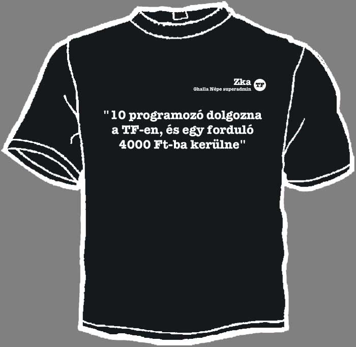 | Új/módosult hírelemek | | Yaurri bányászverseny 3. | | Yaurri mászóverseny 3. | | Yaurri titkosírás verseny 2. | | Yaurri testépítő verseny 2. | | Titanitdukát aukció – 2024. nyár - nyertesek | | Olimpiák története | | A Sötétség Kora | | Termikrajzás 2. | | Yaurri felderítőverseny 2 | | Yaurri felderítőverseny | | XLIV. Alanori Mini Olimpia | | Yaurri kézművesverseny 2. | | Yaurri bányászverseny 2. | | Kalandozók Versenye 2. A Yaurri mászóverseny ma (február 14-én) indult! | | YAURRI TESTEDZŐ VERSENY | | Yaurri titkosírás verseny | | Termikrajzás | | Morf Invázió II. | | LVI. Alanori Olimpia | | XXXVI. Alanori Mini Olimpia | | Yaurri kézművesverseny | | Yaurri bányászverseny | | Plusz TP 2 hétig | | Kalandozók Versenye | | Névpályázat | | Meghalt VI. Borax | | Klasszikus TF 2. - zárás | | Résföld | | XXXIII. Alanori Mini Olimpia | | Végzet Verme 3 | | Élelemszerzés változások | | Elmaradt találkozó | | R.I.P. J.Lo | | Negatív Sík | | 53. Beholder Találkozó - 2020.07.18. szombat | | Titanitdukát aukció - 2020. nyár | | TIT3 titkosírás megfejtő | | R.I.P. | | Klasszikus TF | | Spunk - Pihi | | TRINIGAN RÚNÁJA (453. VARÁZSLÓ VARÁZSLAT) | | Szörny-, varázslat és tárgytervező pályázat | | Végzet Verme 2. | | Az Élet Síkja | | Fairlight bank kamatváltozás | | Szünet az Online táplálásban | | Morf invázió | | Túlélők Földje - Kapcsolat | | Automata táplálás ma délután 4-től élesben (2019. február 18.) | | Online táplálás csevegés (ex-Szerver karbantartás) | | A Tűz síkja | | L. Alanori Olimpia | | Nem hittétek, hogy komoly, mi? | | Hát ez (a) Bunkóság! | | Lemaradt KT-k fejlesztésének a segítése | | Házavató + afterparti Donnánál | | TF fórum - beszéljük meg! | | Élőholt invázió event 2018 | | 25 éves a TF - cikk a nerdblogon | | Új szigetek Erdauinon! | | Kvíz reloaded | | Vashegyek Nemzete KT. #9122 | | Jelentkezés az Olimpiára | | Befizetési akció 2017.06.08. - 2017.06.22. | | A Végzet Verme | | Beholder 25! | | Aukciós változás | | Túlélők 9172KT | | Eseménynaptár 2017 | | Túlélők Földje: Tűzvihar | | Ünnepi munkarend a Beholdernél | | Föld Létsíkja | | III. Quwarg rajzás állapotok | | Álláshirdetés Alanori Könyvtár | | 12! | | Víz Létsíkja | | TF Format a Beholder honlapon | | Letöltések a 4 napos ünnep idején | | Olimpiai Láng | | Kincsvadászat a Kiégett Földeken!!! | | Kvííííz! | | Szabad Kompánia - Toborzás | | Nyugati fejlesztés | | Arany Nyúl Díj '15 | | Tárgy- és varázslattervezői pályázat | | III. Quwarg Invázió előzetes | | Olimpiai Aukció 2015.11.28 | | Túlélők Földje tárgy- és varázslattervezői pályázat | | Társasjáték tesztelés (Startupper Game) | | Kufár hiányában... | | XLIII. BEHOLDER TALÁLKOZÓ PROGRAMJA | | Masszainvázió!!! | | Péntek 13. - Folytatás a Naplók menüben | | Keresem, kutatom | | Idétlen időkig TF... 20 éve | | Bea Melindre és William Madden nagy napja :) | | Közös Tudatok listája | | Új event kibeszélő | | Az átalakulás megkezdődött | | Olimpiai Aukció 2014.11.29 (v11.2) | | Erdauini hírek | | Hétvégi letöltés dömping :) | | Technika ördöge | | Letöltés Október 18-án | | Elementál rajzás | | TS3 szerver | | Két magányos lélek! | | Olimpiai Aukció 2014.06.21 (v10.2) | | Varkaudar-Thargodan Invázió | | 10 éves a GN! | | Bunkó Akadémia | | Ezüstszelence | | Ünnepi munkarend | | Kalandozók Figyelem | | Olimpiai Aukció 2013.11.30 (v9.2) | | Téli Aukció hírek | | Toronyháború 2. | | Házasodott a gizda | | Reloaded | | Help (nem tf) | | Hogyan lesz a Vajákosnak piszkafája? | | Lemaradás vásárlás | | Olimpiai Aukció 2013.06.22. (v8.0) | | Péntek esti bemelegítés | | AK-s labirintusok és krónika (#1725) | | Tárgytervezői pályázat | | Egy ma született húsvéti bárány :-) | | Szerezz ajándékot Túlélők Földje vagy Végzetúr karaktered számára. | | Térkép a netes fordulókban | | Túlélők Földje Bónuszok | | Varázslatok fejlesztése | | II. Quwarg rajzás | | NJK tervezői pályázat - Eredményhirdetés | | Jelenlét bónusz | | EXTRA | | VÉRTVORNYAAAAAA!!!!!!! | | Melegítés a talira | | Olimpiai Aukció 2012.11.24. (v7.0) | | MAFFIA KT Reborn | | NJK Tervezői Pályázat | | II. Quwarg rajzás - Ryuku szigetek | | Probléma | | FOCI EB (vaúúúúúú) JÁTÉK | | Nyilt level Krapixlon Authir olimpiai foszervezonek | | Olimpiai Aukció 2012.06.23. (v6.0) | | ÁRNYMENŐK (#9153 KT) tagokat keres! | | A XXXVII. Beholder találkozó programja | | Rius featuring Koc a Milliomosban | | Közös TF-es Yahoo-s listák | | Elhunyt Wachek Norbi (White Nor Wacak) | | Pályázatok a Túlélők Földje játékosainak a XXXVII. Beholder Találkozóra! | | Quwrag rajzások hősei 2. | | Szakértelem revamp | | Bunkó Akadémia | | A quwarg rajzás hősei | | I. Káosz Bál | | 1. Tesztolimpia | | Tudásbázis moderátorokat keresek | | Quwarg Rajzás 2. | | A Korona Bajnokai (#9125) tagfelvételt hirdet | | új TK-k | | Quwarg rajzás 2 | | Beholder Kft. - Ünnepi munkarend | | Elkezdődött a II. quwarg rajzás? | | Tesztolimpia | | Aukció | | TF fórum - beszéljük meg! | | Olimpiai Aukció 2011.11.26. (v5.0) | | Fogadás! | | Az Ország Boltja verseny - +5% TP | | Mínosz-kúpok a Kiégett Földeken | | Kilépés a KT-ból | | Adatbázis-bővítés | | XXXVI. Beholder találkozó | | Ébredés | | Tag felvétel | | Változások 2011.09.29. | | Rendkívüli tf-fórum | | Beállítós UL | | Lemaradás vásárlás - véglegesítve | | Lemaradás vásárlás | | Tali Aukció 2011.06.18. (v 4.0) | | TVP termelő kiskapu | | Borax király beteg | | A XXXV. Beholder találkozó programja | | Vertestverek LAST MINUTE | | Ünnepi munkarend | | Új terület: Kiégett Föld | | TF talis aukció v3.0 | | A XXXIV. Beholder találkozó programja | | Erőpróba | | Várkuti találkozó hely